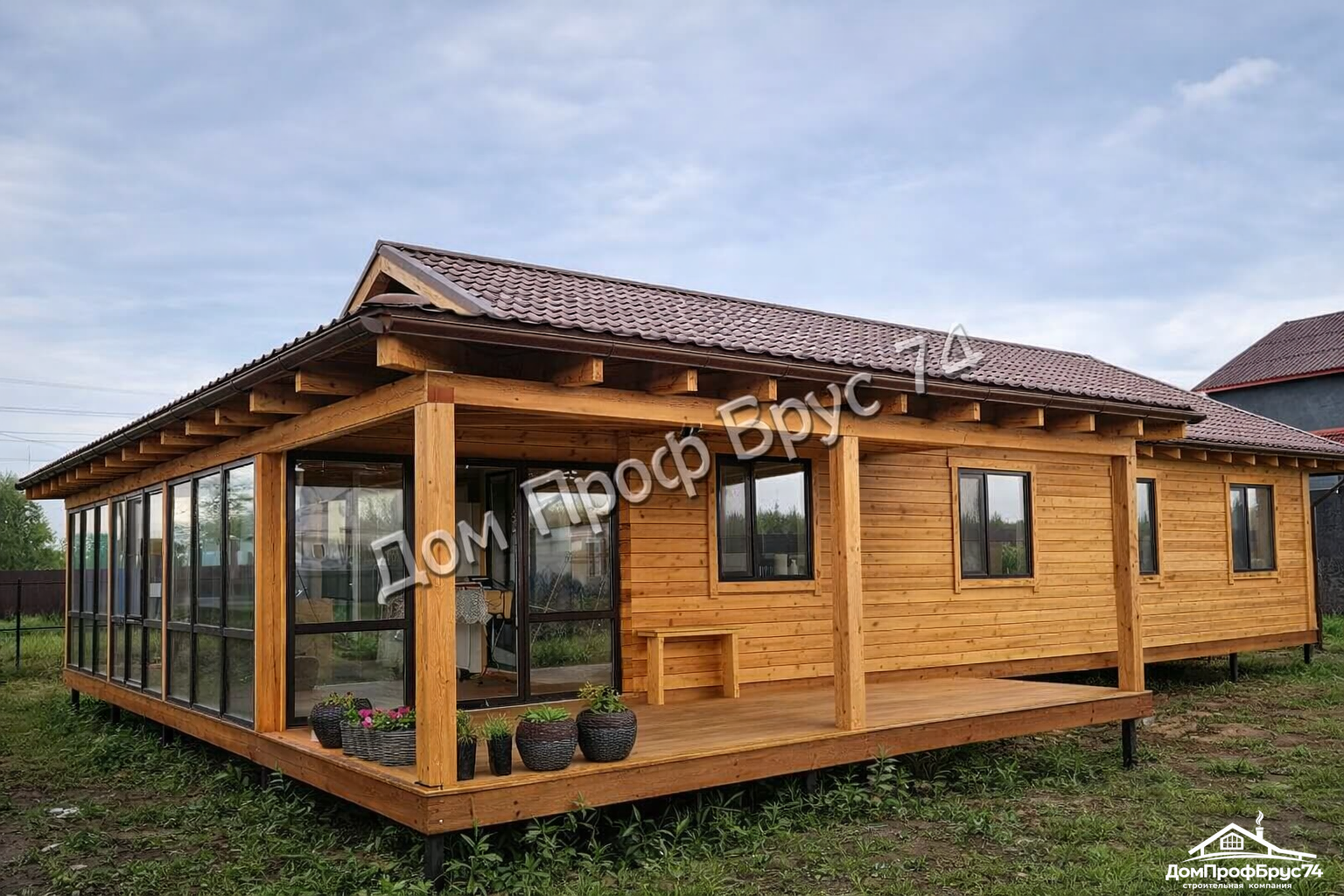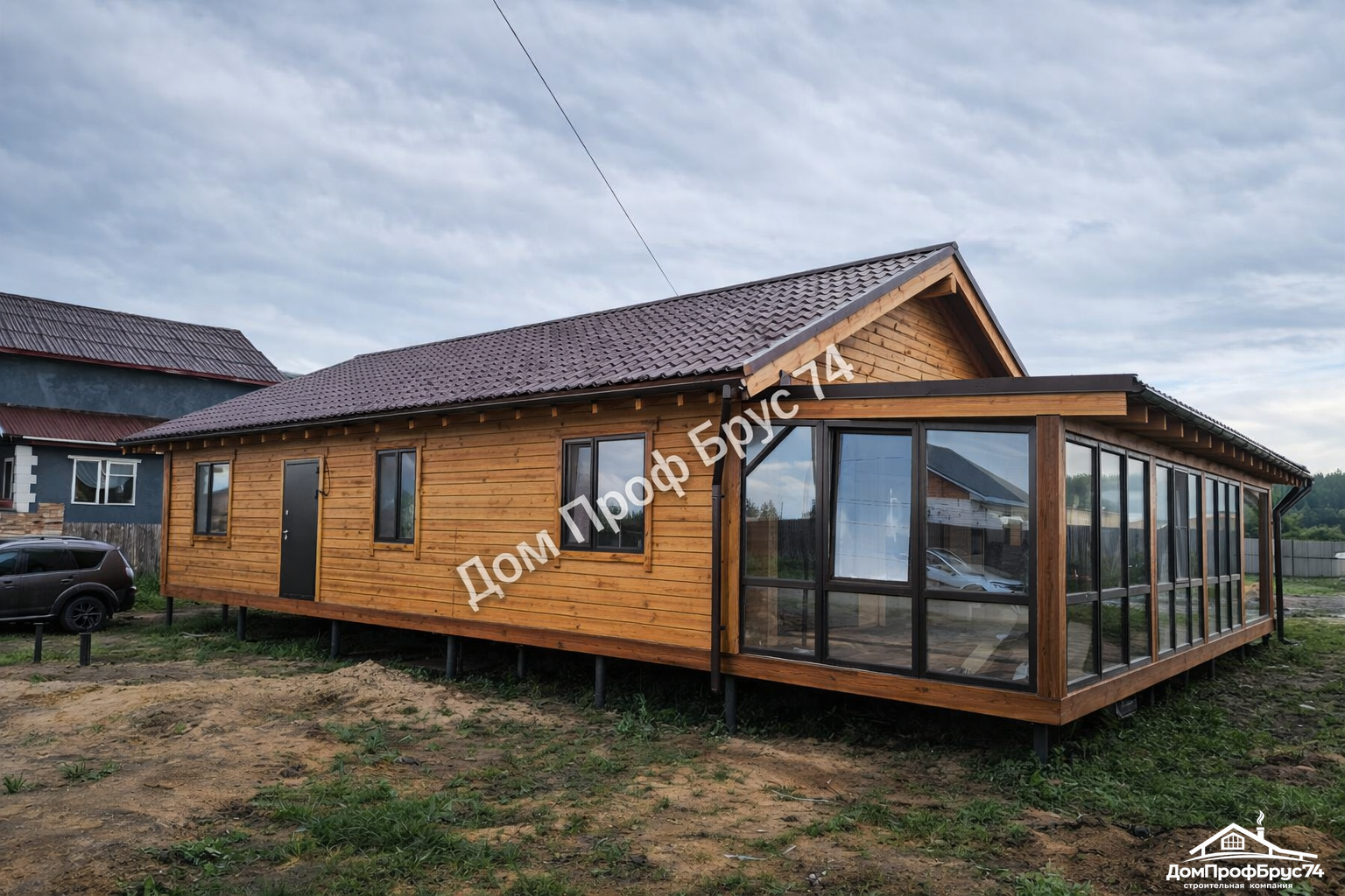 Фундамент свайно-винтовой, кровля из металлочерепицы ГОСТ 24045-2023, возможна терраса 42 м². Строительство по договору с гарантией качества в Челябинске и области.