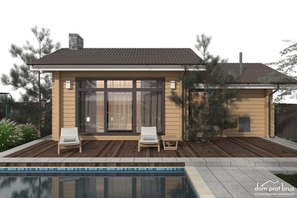 * Возможность адаптации проекта: мы готовы внести изменения в планировку с учетом ваших пожеланий.Баня "Лагуна" 44 м2 – это: