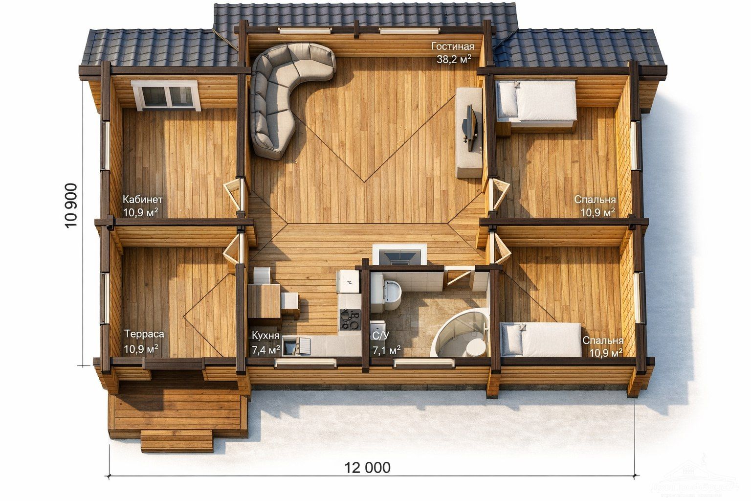"Очаг": одноэтажный дом из клееного бруса 132 м²