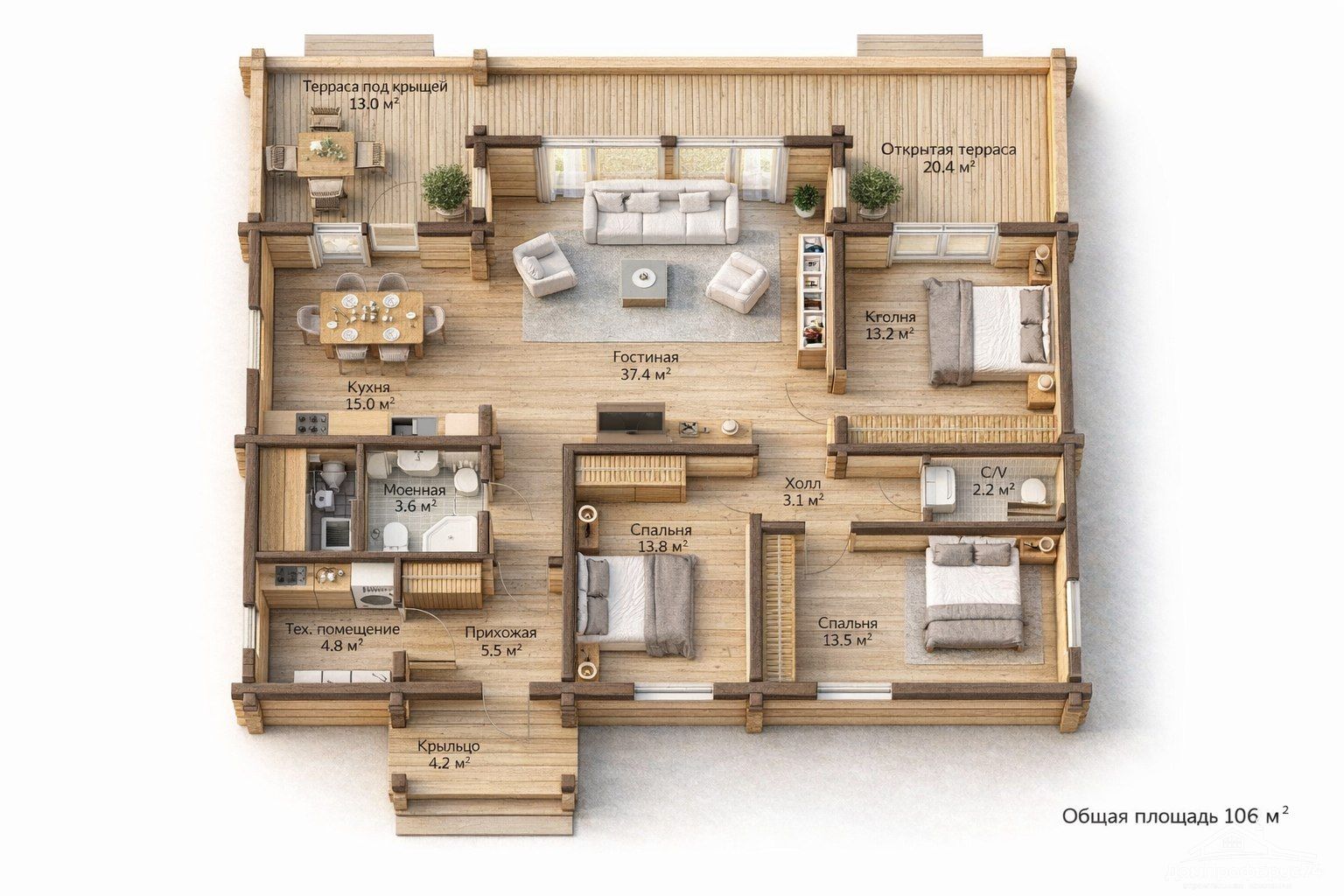 * Зона отдыха: Наличие собственной сауны и просторной открытой террасы (33,5 м²) превращают этот дом в настоящий курорт. Наслаждайтесь теплом сауны после активного дня на природе или устраивайте семейные ужины на свежем воздухе.