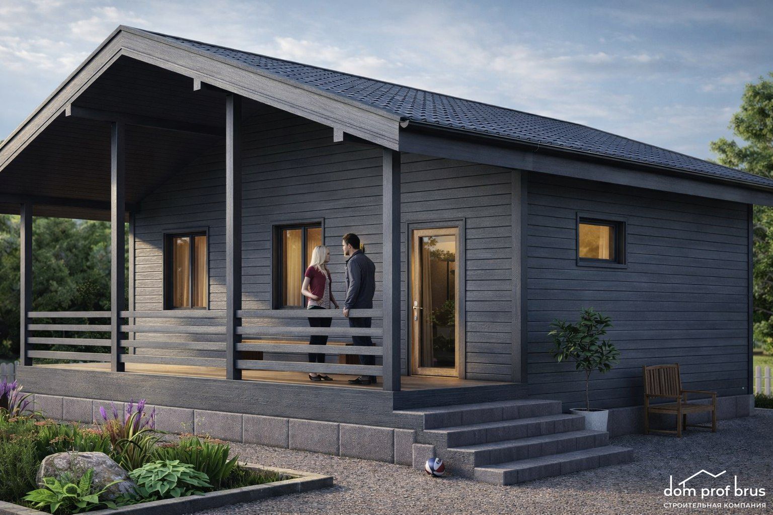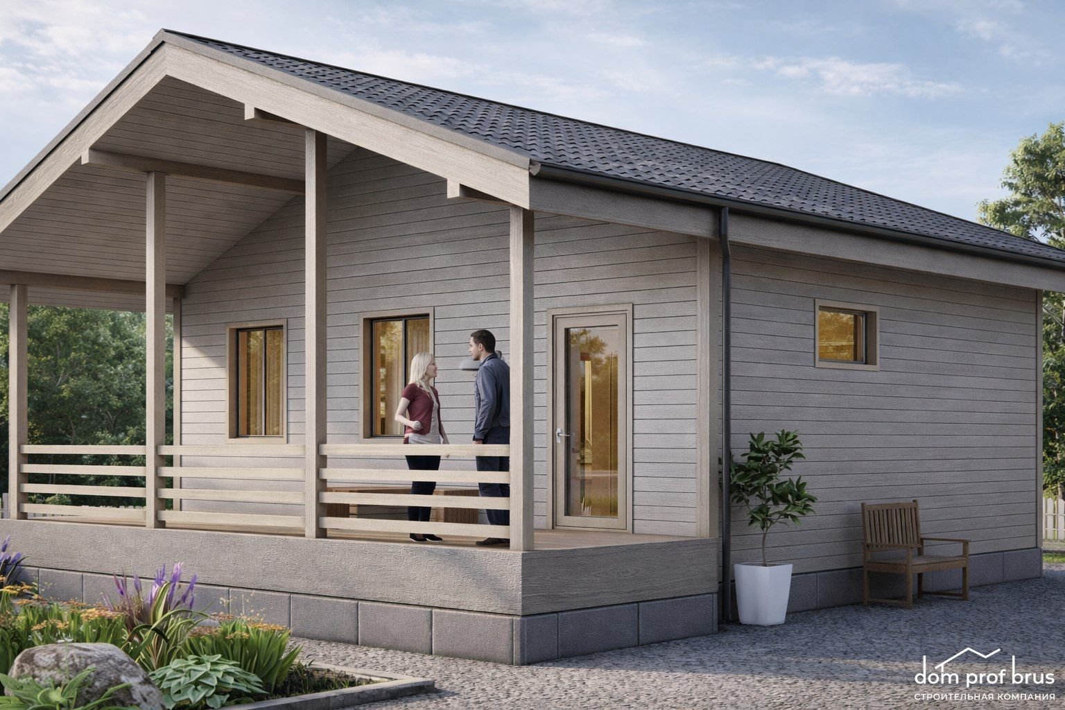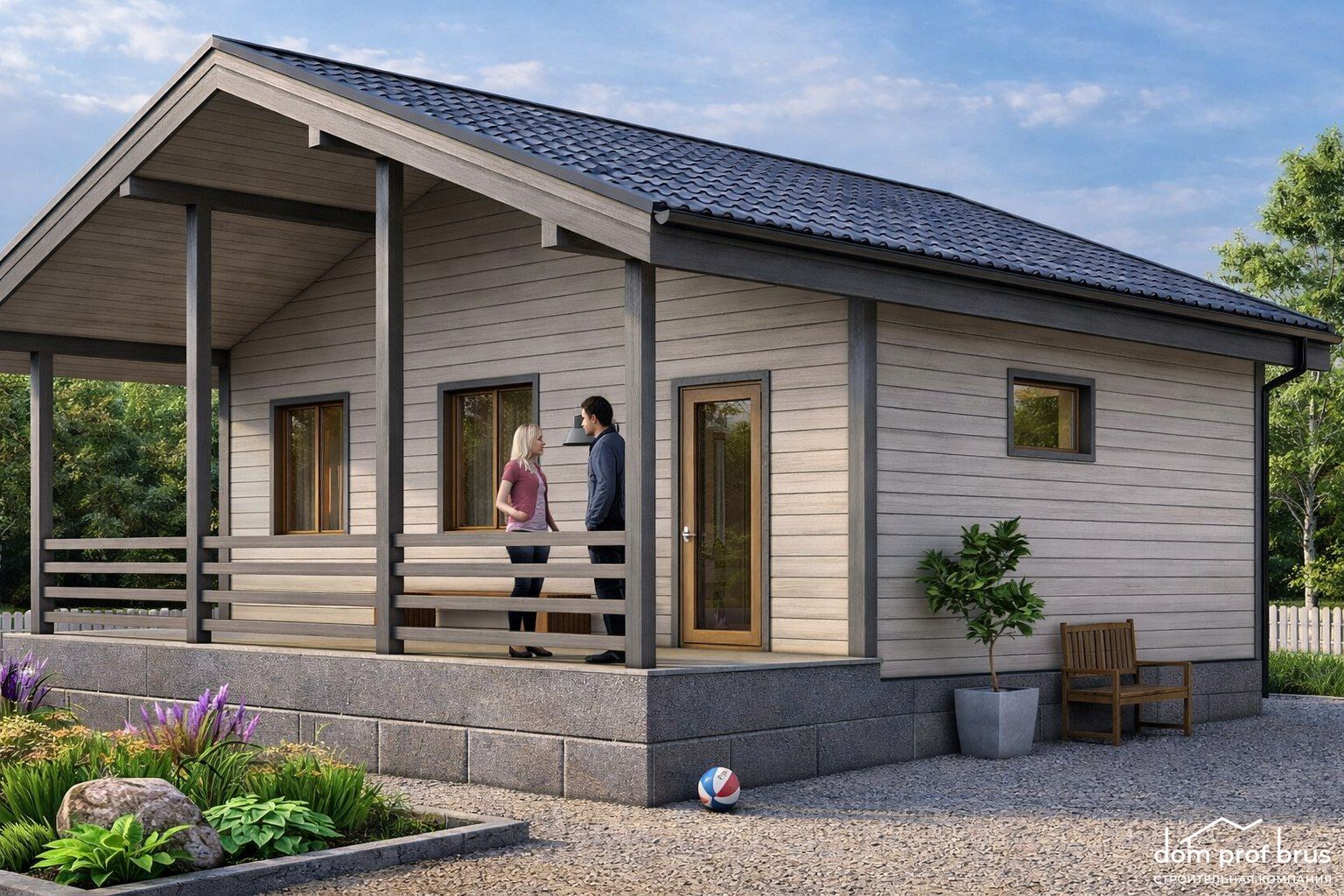 Комфортный каркасный дом 10х9 м с террасой. Отличное решение для семьи с детьми.